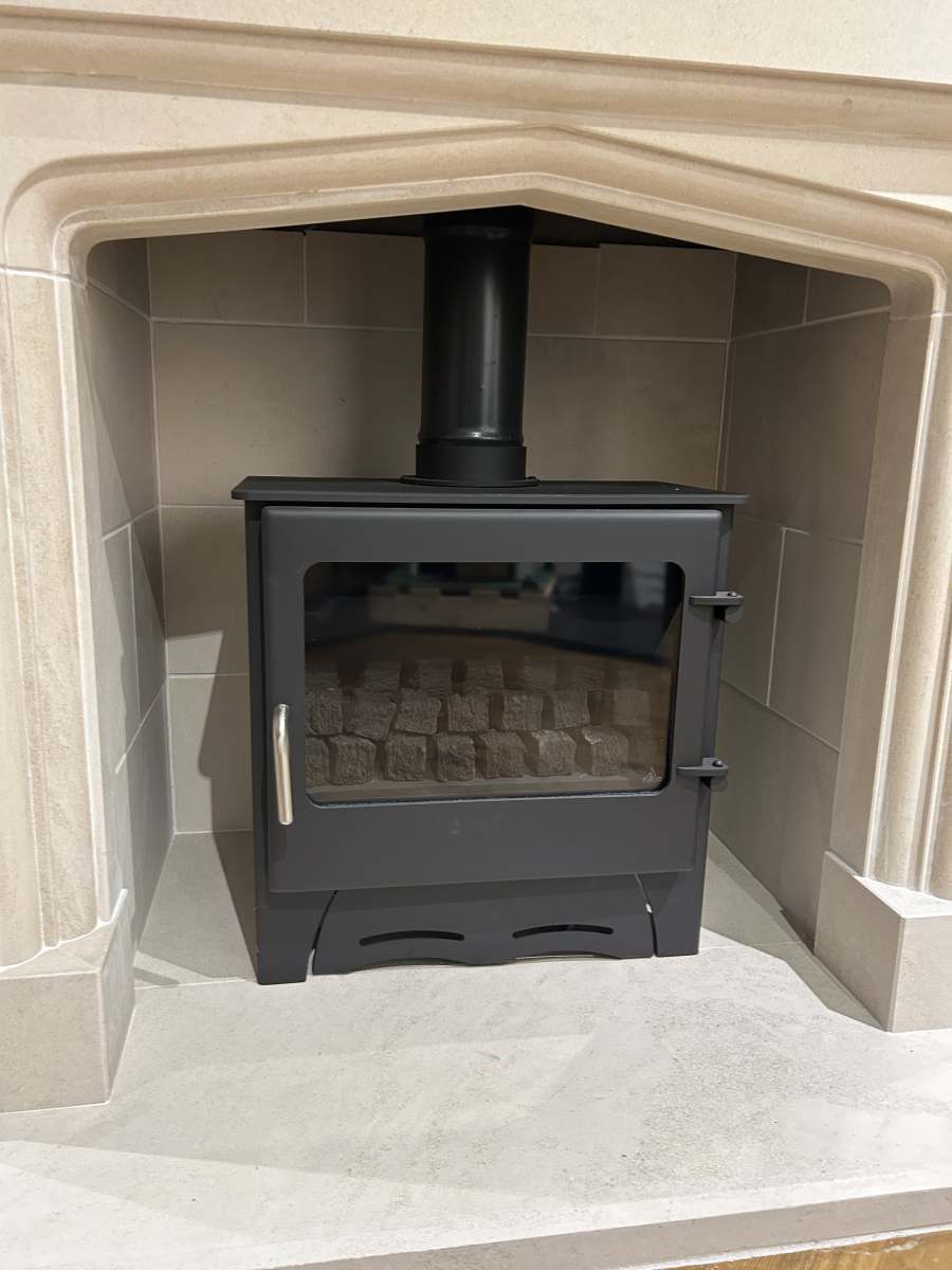 62″ Limestone Surround, Slate Chamber, Hearths & Slips With Electric Stove. Reduced To Clear!!!